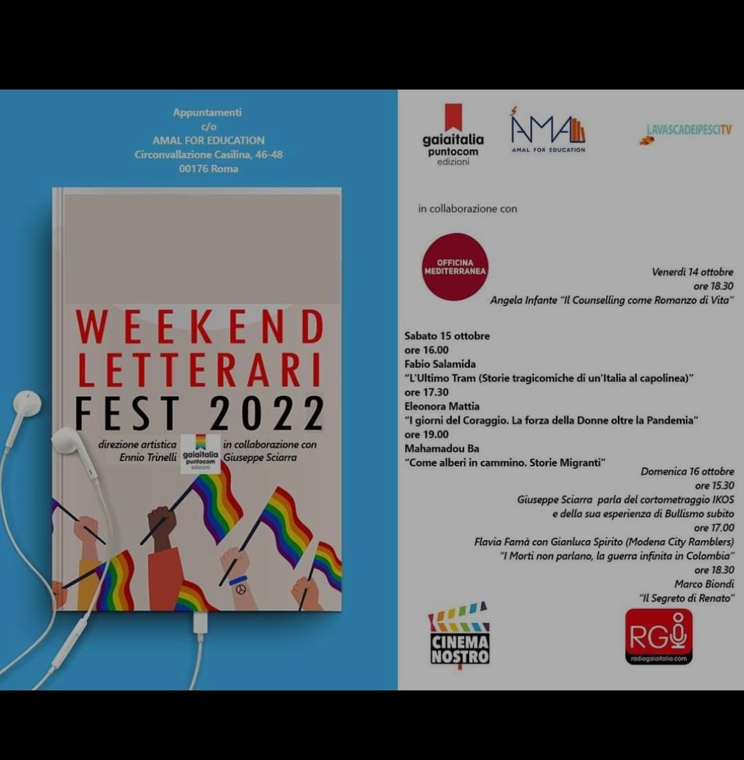 Mahamadou Ba sarà presente sabato 15 ottobre alle ore 19.00 al Weekend letterari Fest, presso il centro AMAL FOR EDUCATION, in via Casilina 46-48, Roma